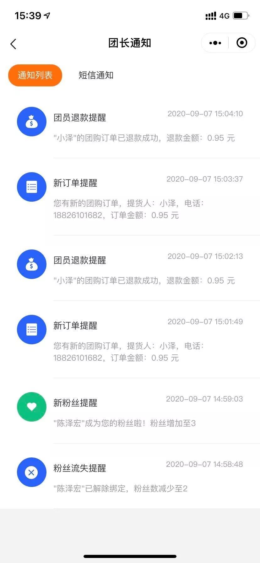 团长常常需要了解订单、粉丝和成团情况,对各类数据进行统计复盘。本次新增多个消息通知,包括新订单提醒、成团提醒、粉丝流失提醒等等;同时,团长可自主选择开启短信通知,实时提醒各类变动情况,避免消息遗漏,实现高效管理。