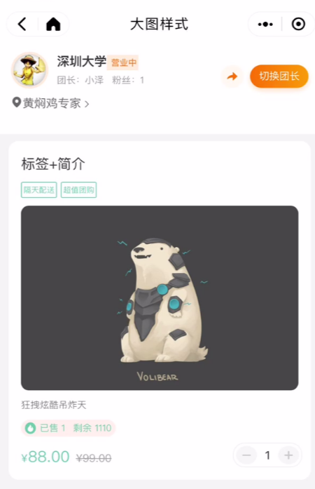 为了更好地展示商品,本次新增大图样式,可展示商品标签和商品简介,为商品提供补充描述,让用户更全面了解商品,提升用户消费体验。