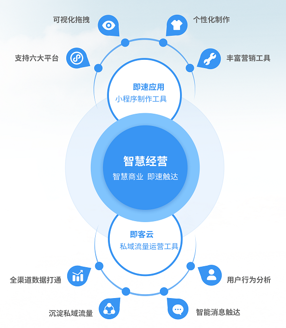 辣云应用基于小程序生态体系,为中小企业提供全场景、全链路的全域智慧经营解决方案,实现线上线下场景进行深度融合,协助企业进行数字化转型,创造新的发展生态。