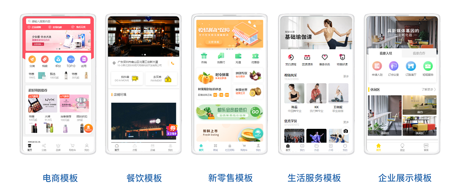 辣云应用聚焦电商、餐饮、新零售、生活服务、企业展示等行业,为商家提供100+小程序一站式行业解决方案,包括餐饮、电商、新零售、生活服务等模板,助力商家借助小程序实现快速转型。