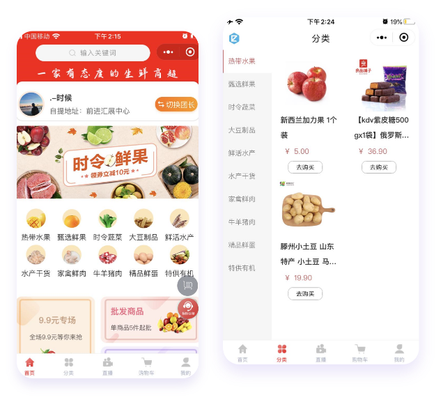 以社区为切入点、小程序为载体,通过社交方式销售产品的新型团购